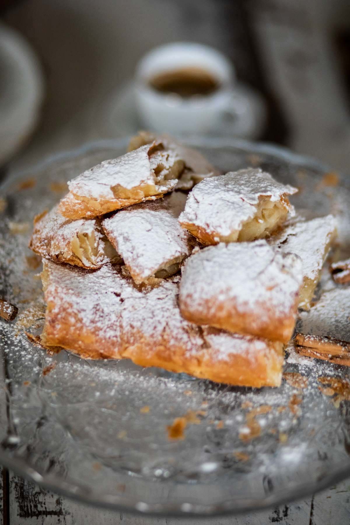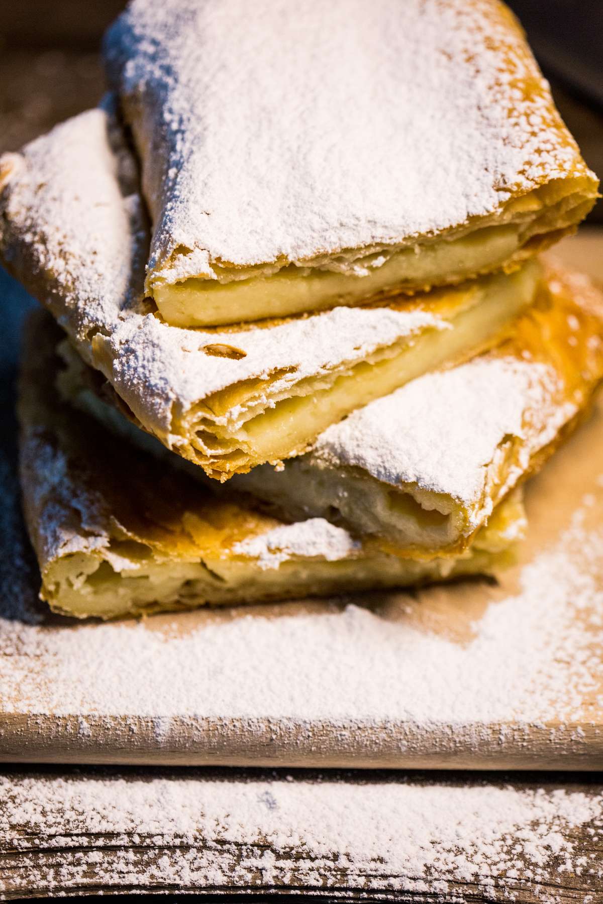 Οι μπουγάτσες μας φτιάχνονται με την παραδοσιακή συνταγή, όπως πρέπει, χωρίς έτοιμες κρέμες, με ολόφρεσκα υλικά! Ήταν στοίχημα για εμάς να δημιουργήσουμε την ανάλαφρη ζύμη και την πλούσια γέμιση που χαρακτηρίζει το είδος αυτό, και με πολύ υπομονή και φροντίδα τα καταφέραμε!